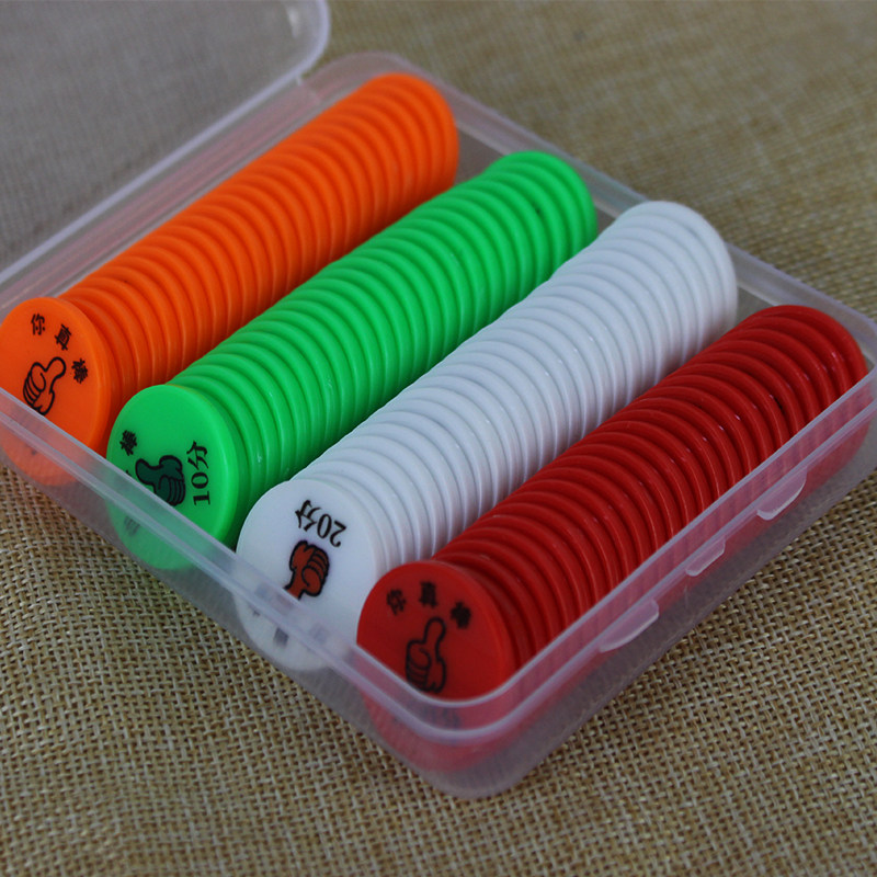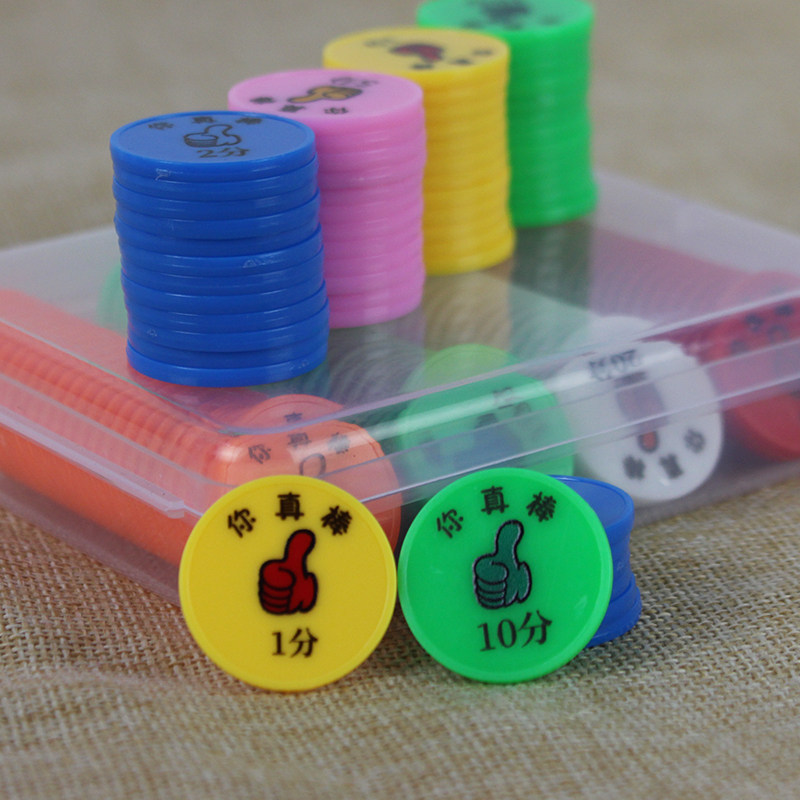 1 point yellow 100 with box 2 points blue 100 with box 5 points Pink 100 with box 10 points Green 100 with box 20 points White 100 with box 50 points Orange 100 with box