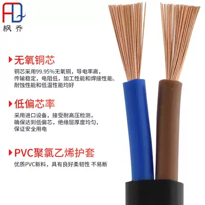 The national standard copper RVVB2 core flat ruan hu tao xian 0 3 0 5 0 75 1 0 1 5 monitors the power supply line Black and White
