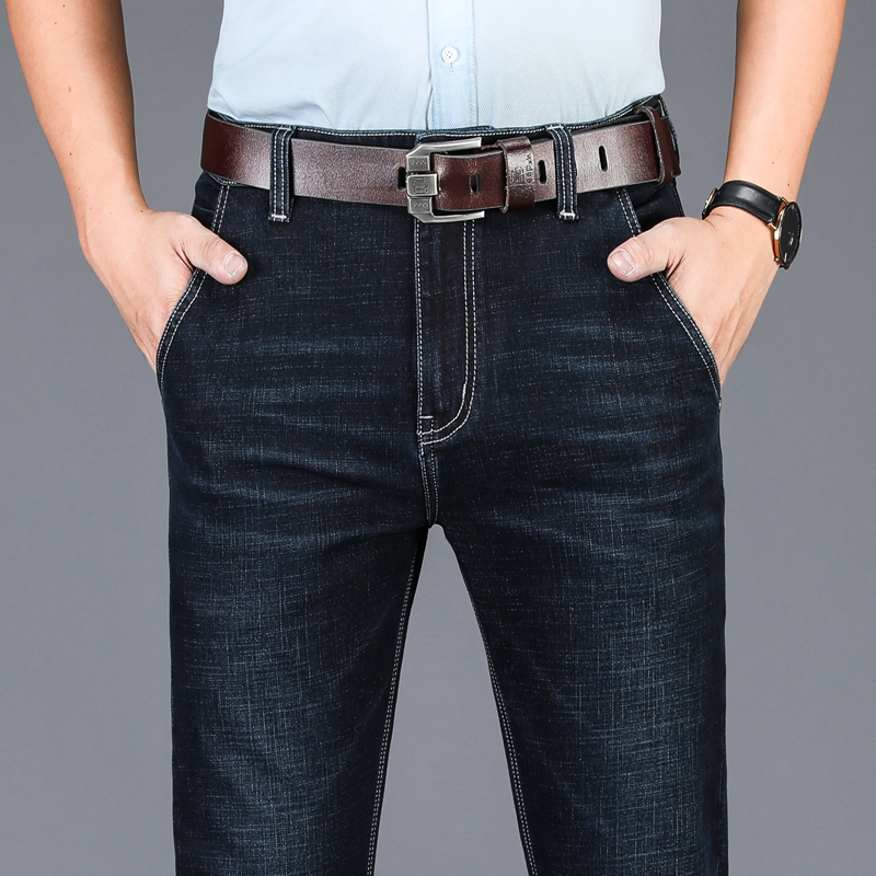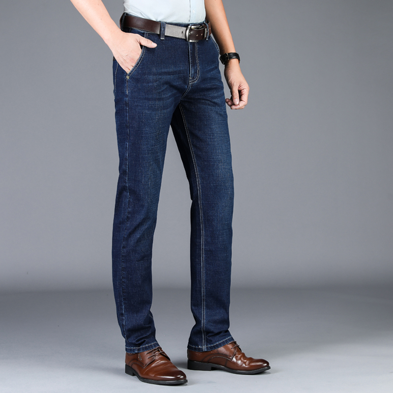 2022 new men's jeans straight loose high-end business casual stretch European and American long pants summer thin