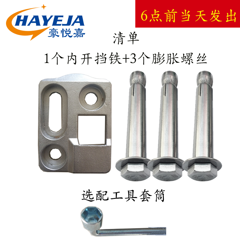1 internal open stainless steel stopper 3 expansion screws 1 inner open stainless steel stopper 3 expansion screw sleeves 1 outer open stainless steel blocked iron 3 expansion screws 1 outer open stainless steel stopper