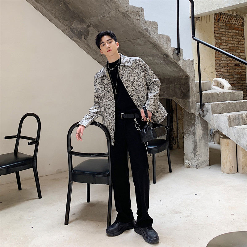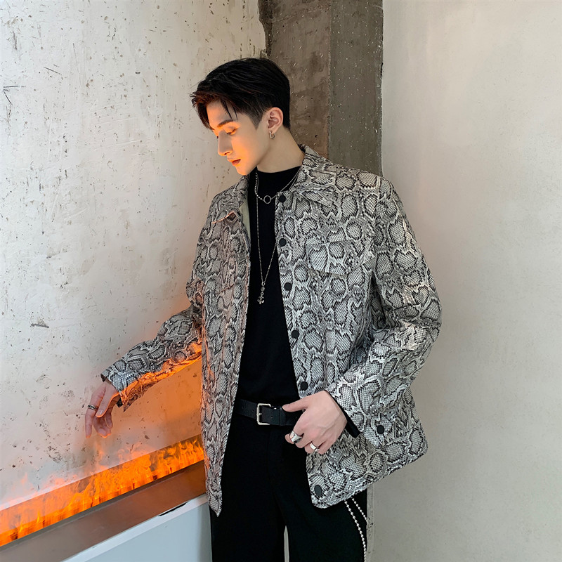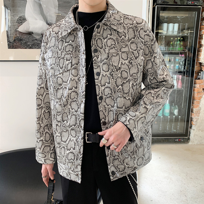 Snake Pattern Leather Jacket Mans Trendy Loose Tide Card Walk Show Fashion Autumn Clothing Men's Jacket Small Crowdart Blouse