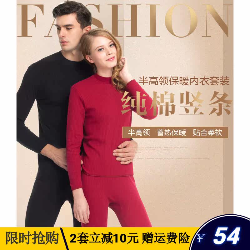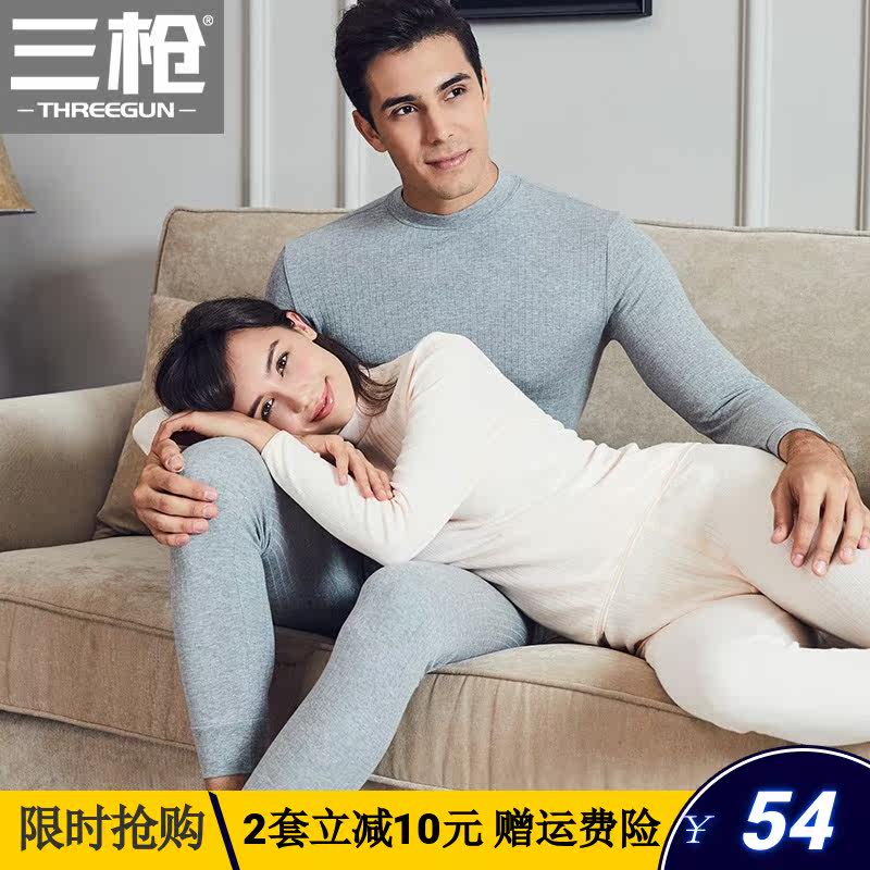 Three gun lingerie female pure cotton vertical stripe half height collar slim fit male cotton sweatpants autummy sweatpants Heating clothing pants