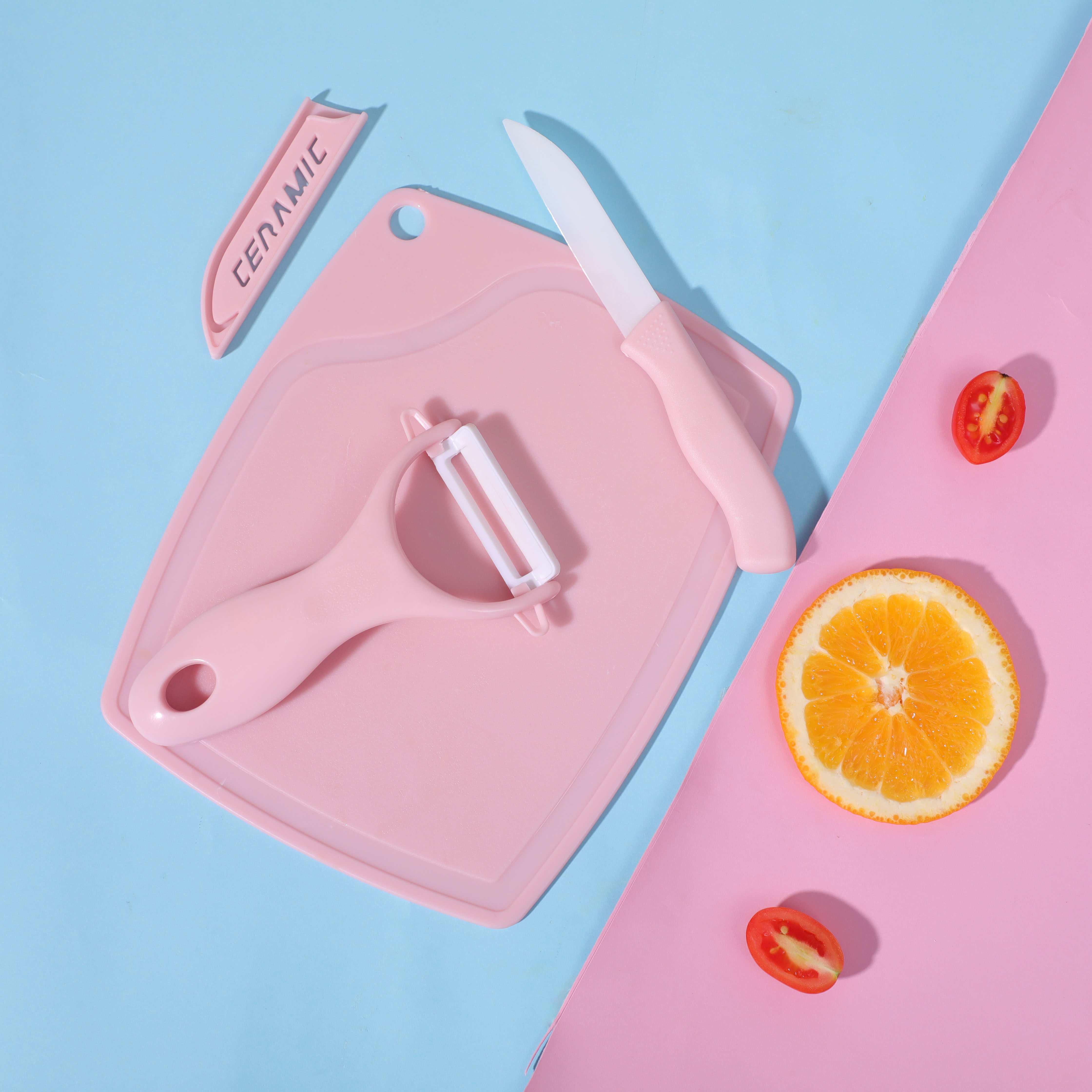 Japan KOMEKI 4214 Ceramic knife 3 pieces of suit with cut vegetable plate chopping block with sheath ceramic knife peeler