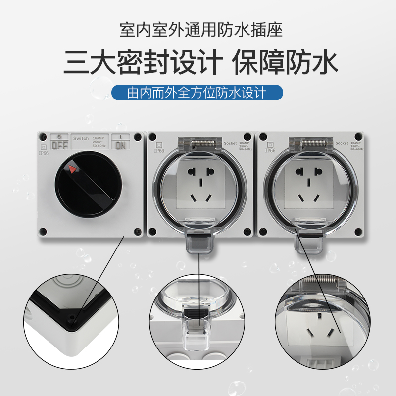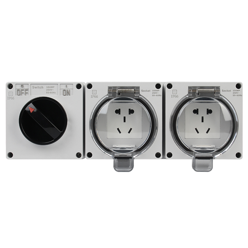 One with five holes (surface mounted), two with five holes (surface mounted), three with five holes (surface mounted), four with five holes (surface mounted), one knob switch (surface mounted) One knob open