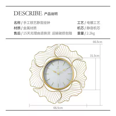 New Chinese ginkgo leaf wall clock fashion modern minimalist clock living room wall clock creative light luxury household personality clock