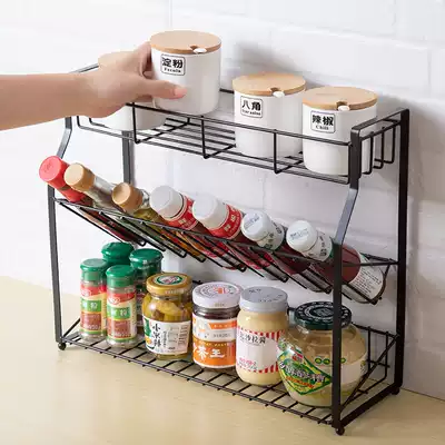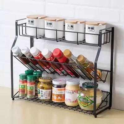 Seasoning jar shelf seasoning rack kitchen countertop oil salt sauce vinegar storage condiment multi-layer black seasoning rack