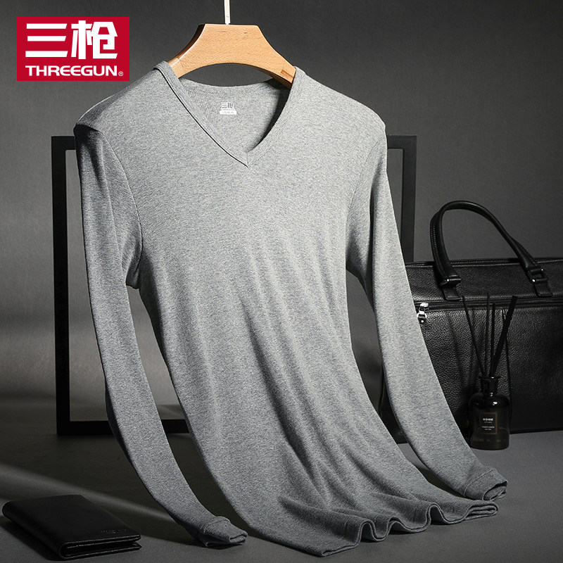 Three guns autumn coat male autumn cotton single piece top V neck stretch slim slim thin bottom long sleeves inside wearing cotton sweater