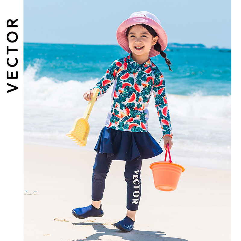 VECTOR Children's Diving Dress Two Pieces Swimsuit Girls Small Sleeve Sleeve Trousers Sun Dry Swimsuit