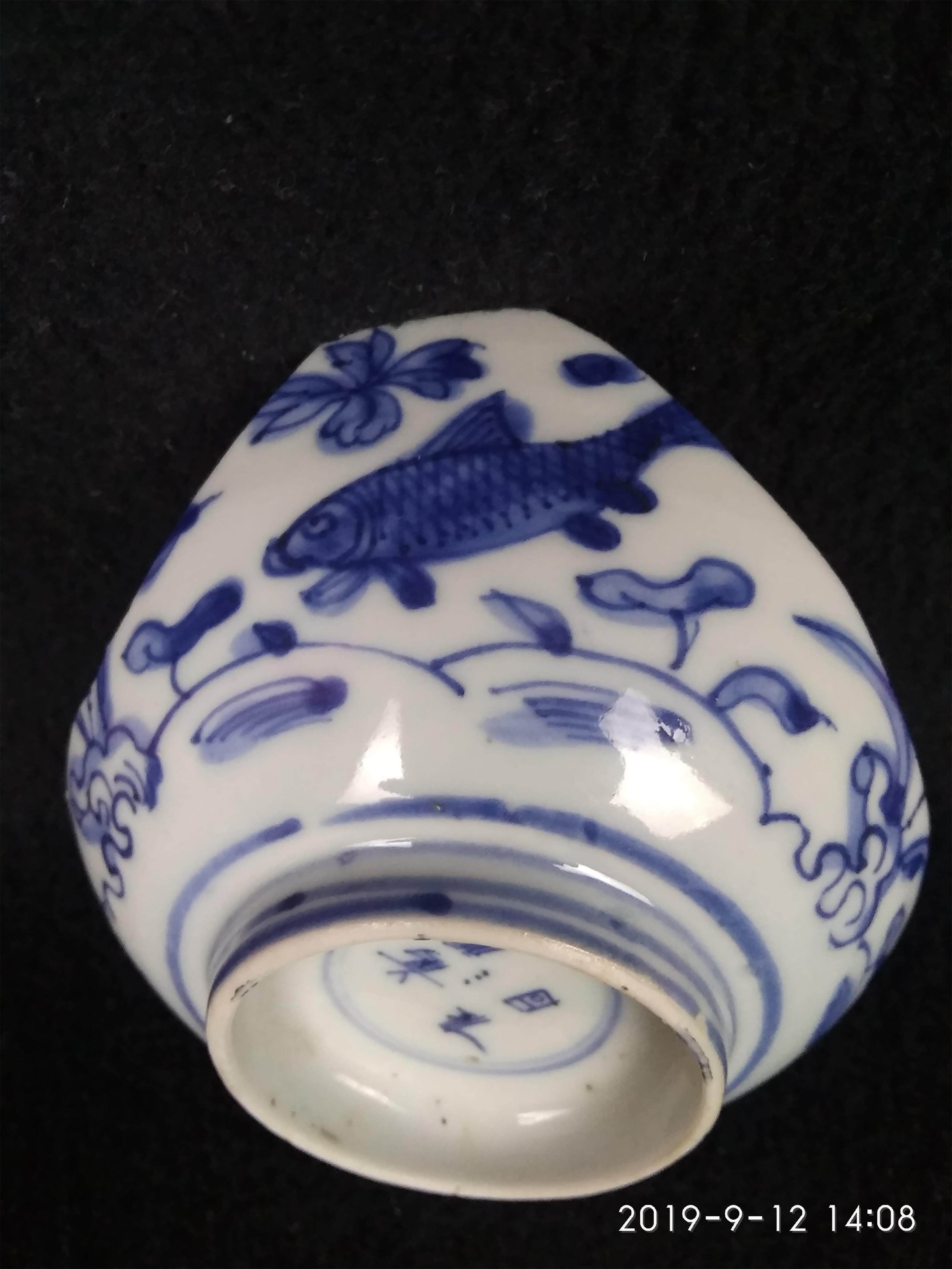 The Qing Dynasty Jiaodao Wanfu You and the Entrust Hand-painted Floral Goldfish Water Grass Tattoo Porcelain Pieces with a good look of blue and white porcelain