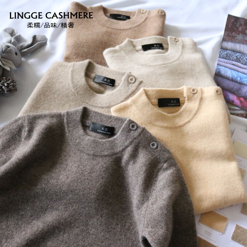 Children cashmere sweatshirt boy without coloration semi-high collar shoulder buckle sleeve head warm child clothing winter girl to hit bottom baby sweaters