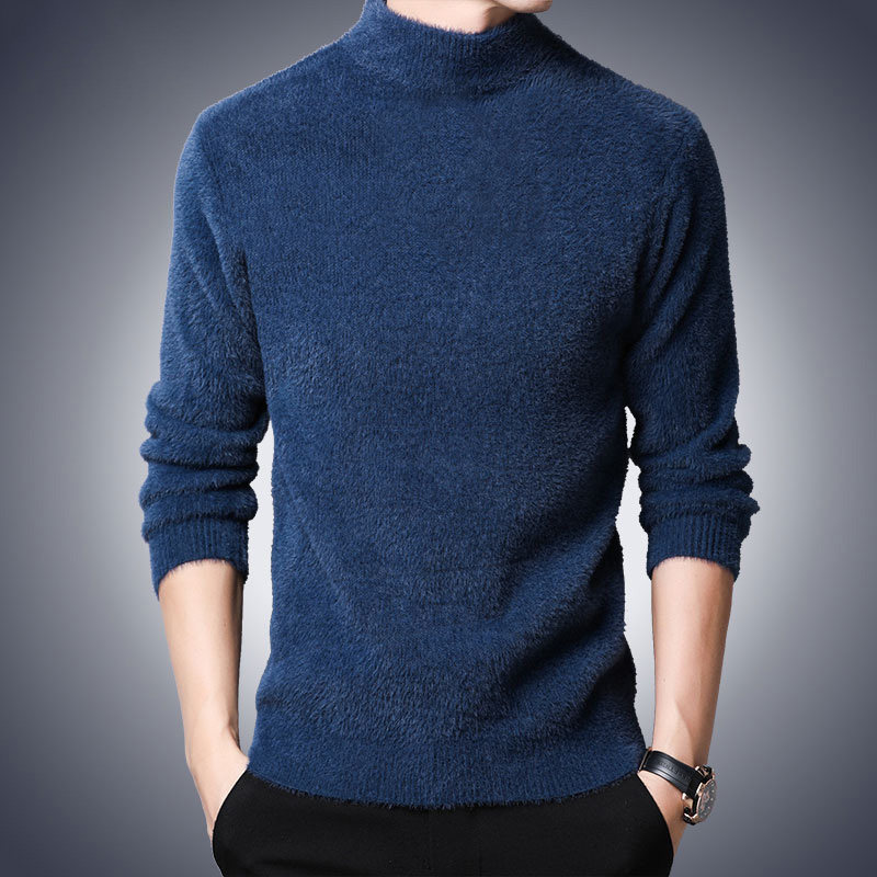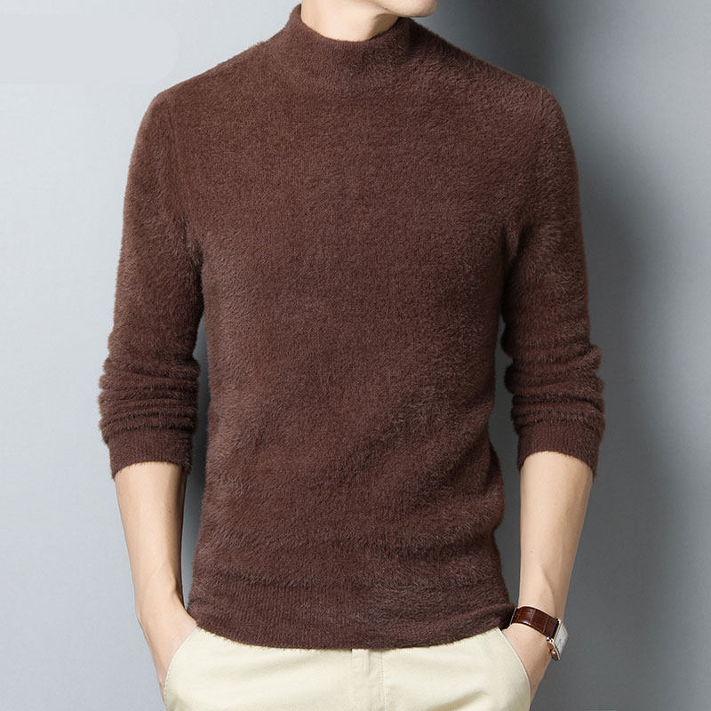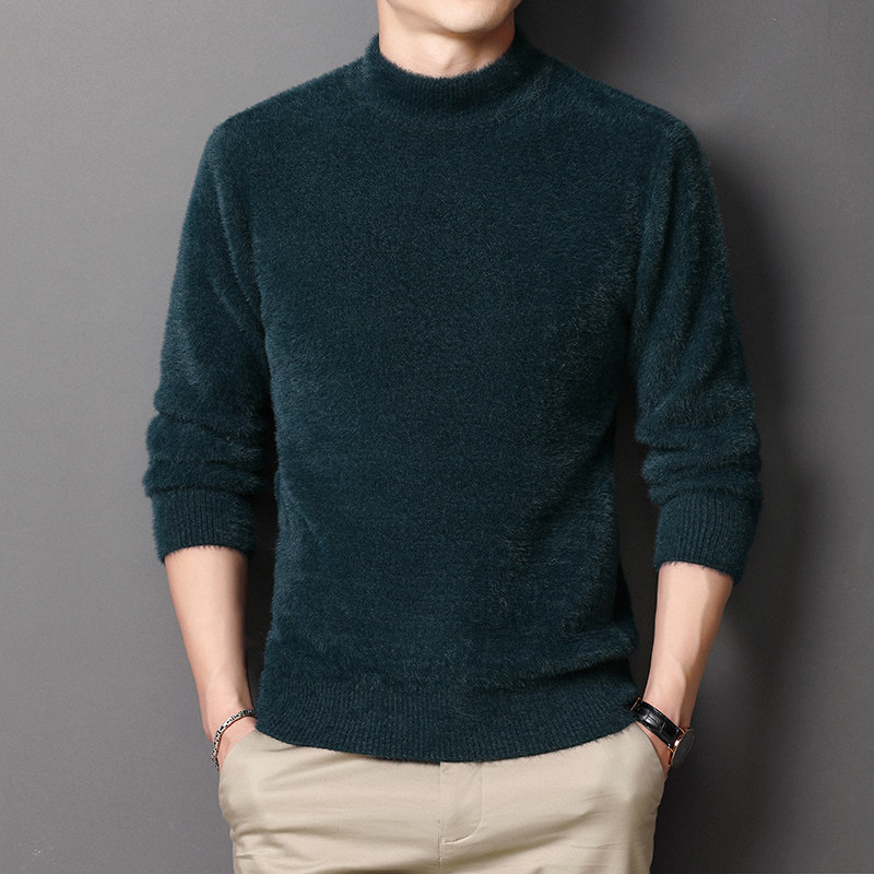 Imitation mink velvet mid-neck sweater men's half turtleneck autumn and winter thickening Korean style trend slim bottoming sweater