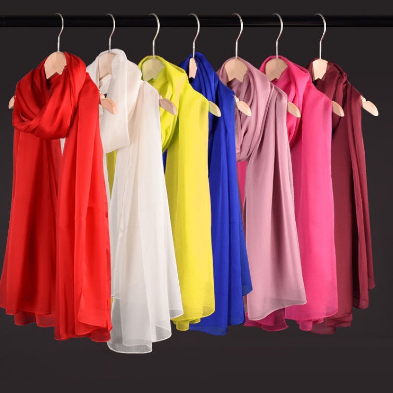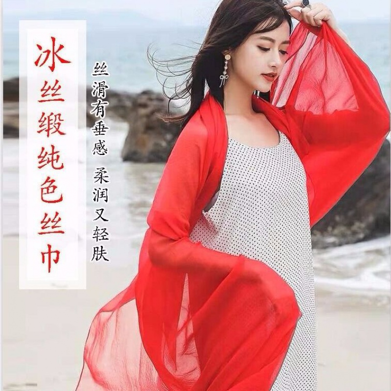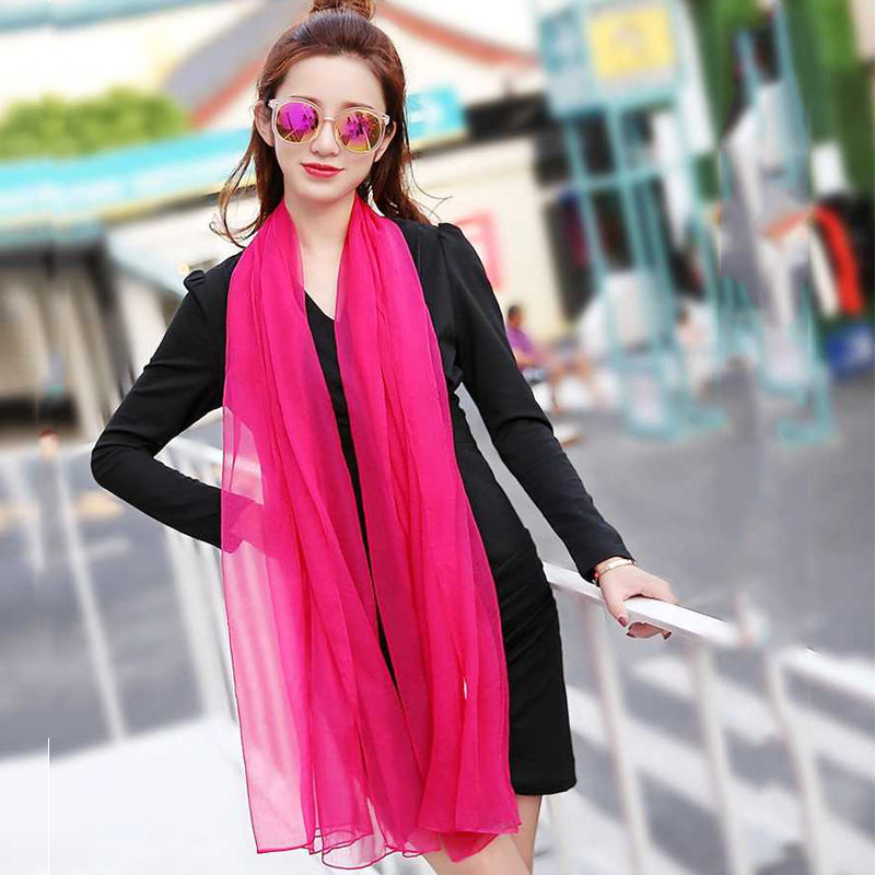 Super soft solid color silk scarf female long version of wild Chiffon scarf shawl Spring and summer sunscreen autumn and winter warm travel beach towel