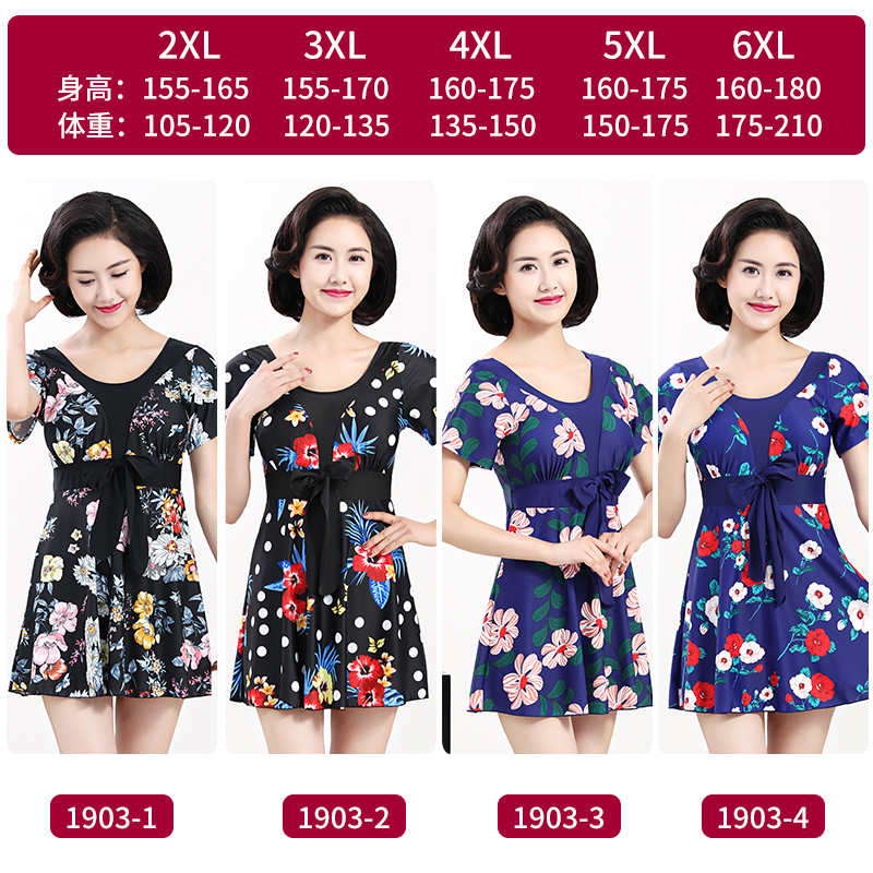Mid-aged mother spa swimsuit woman conservative large size dress with slim fit and weight mm200 catty swimsuit