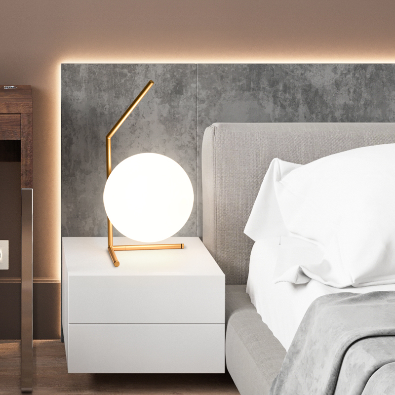 Glass table light LED European-style bedroom bed head cabinet cozy creative brief Nordic Wedding Room headlights