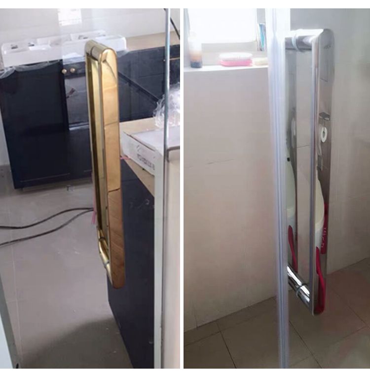 Thickened 304 stainless steel bathroom shower room square tube glass door handle pull door pair handle titanium alloy matte black