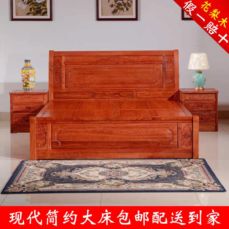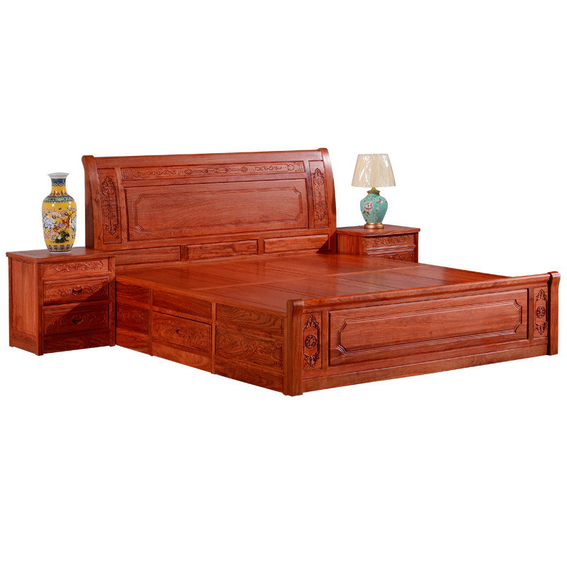 Mahogany bed African rosewood modern Chinese simple double queen bed combination solid wood hedgehog rosewood bedroom furniture