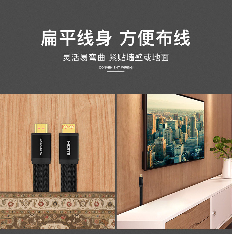 Autumn leaf original QS6803 HDMI line high picture quality line support 4K TV set notebook computer onboard box projector connecting wire with woven shielding imitation interference flat easy wiring 10 m 15 m