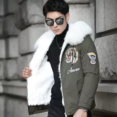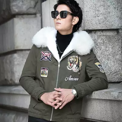 New cotton-padded men's tide long version short handsome plus velvet thickened locomotive couple tiger head embroidered jacket