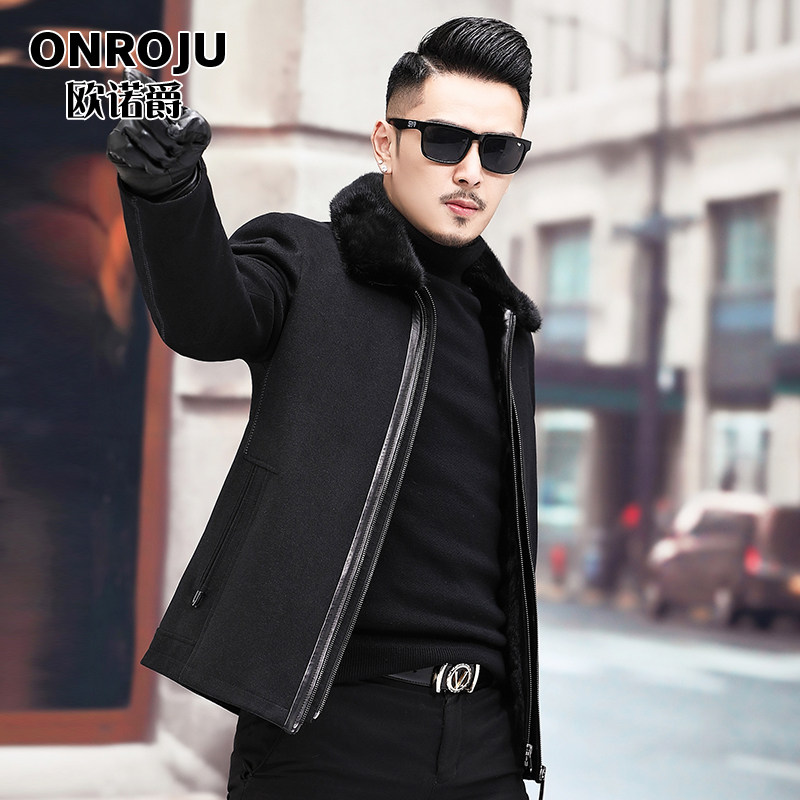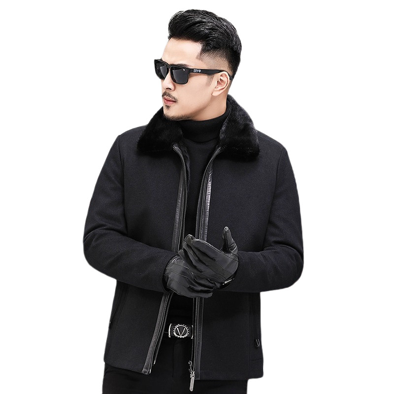 Mink collar wool coat liner fur one-piece Parker service men's short jacket Haining fur coat