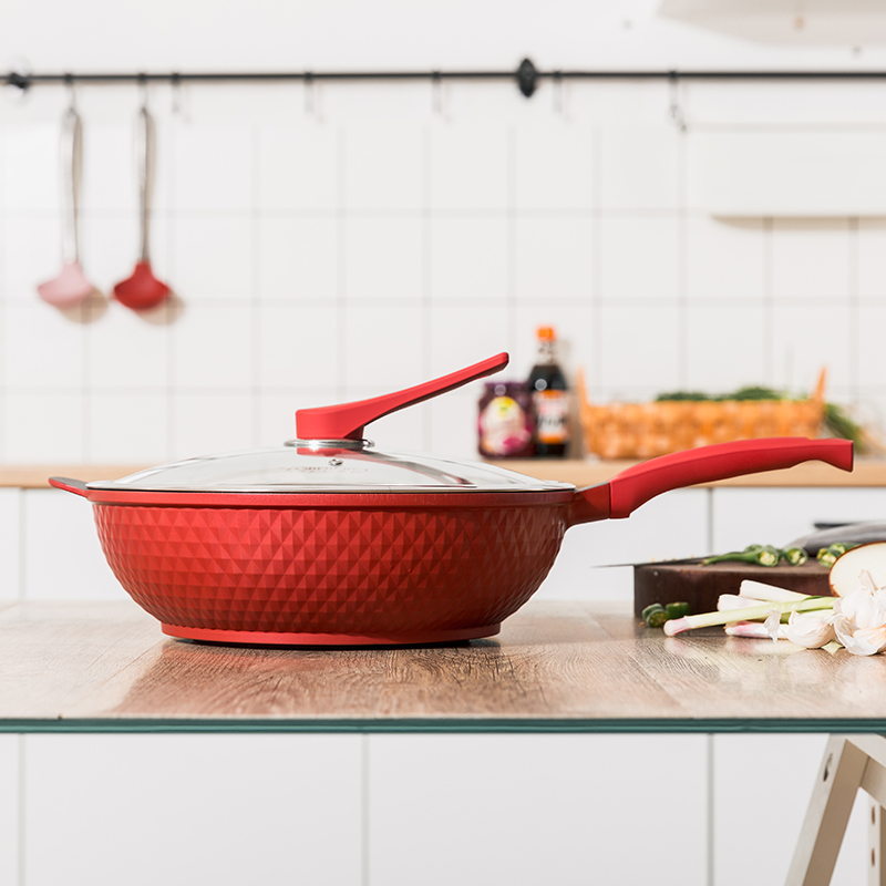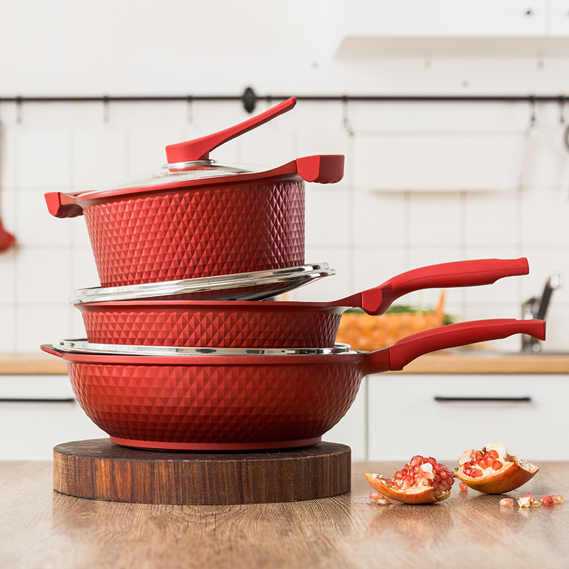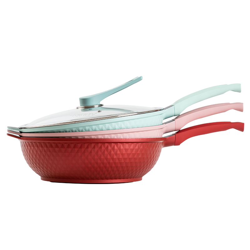Red Diamond wok soup pan frying pan spoon set Pink Diamond wok soup pan frying pan scoop set red diamond wok soup pan frying pan pink diamond wok