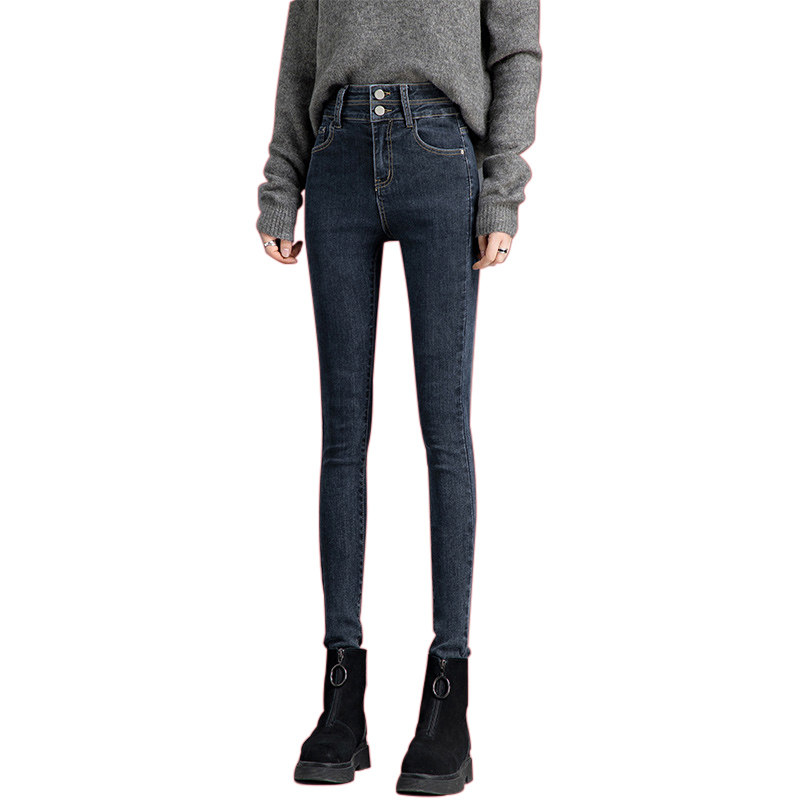 2022 New Spring Autumn Blue Skinny Jeans Woman High Waist Display Slim Retro Elastic Body Slim Fit Slim Fit Pencil Pants