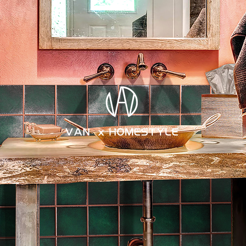 Van Neu Retro Metal Ink Green Square Brick Ins Nets Red Restaurant Bar Terrace Floor Tiles Toilet Tile Kitchen Wall Brick-Taobao