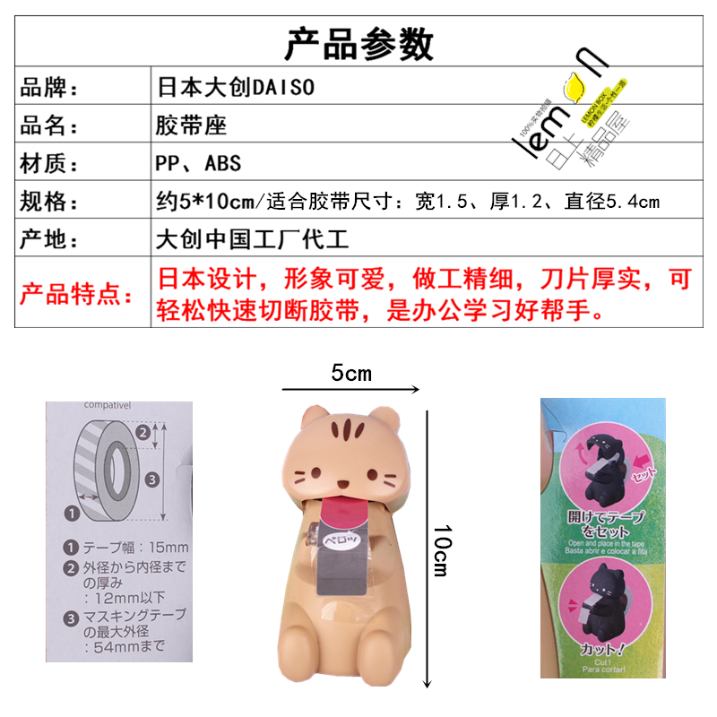 Cute cute cat tape cutter Stationery tape holder small learning office supplies Japan DAISO