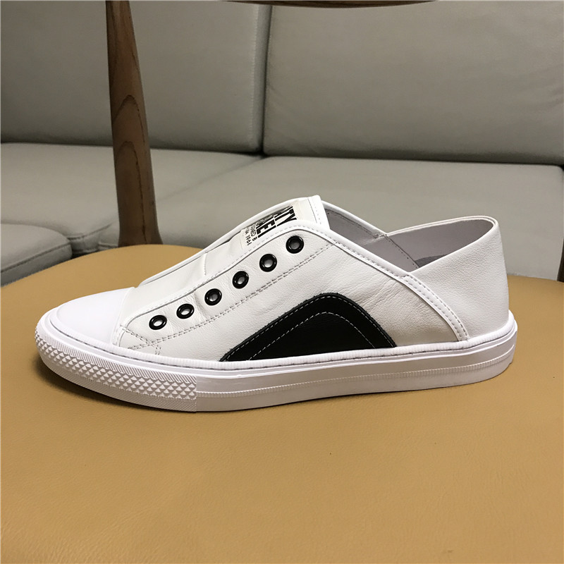 Set of feet white shoes men's 2022 new summer leather breathable soft cowhide lazy slip-on casual shoes men's small size