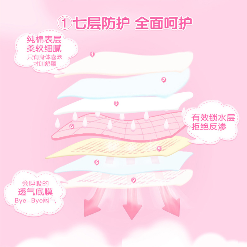 Seven Degrees Space Sanitary Cotton Daily Elegant Silk Soft Ultra Slim Pure Cotton Breathable Aunt Towel 3 Pack 30 sheet