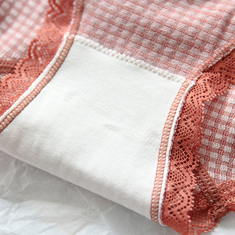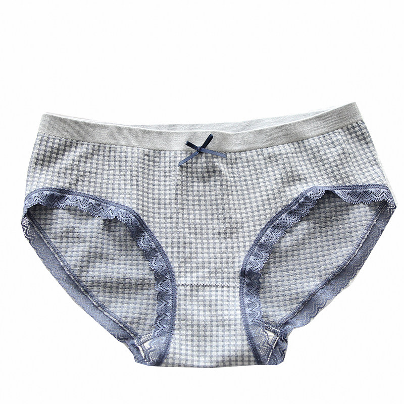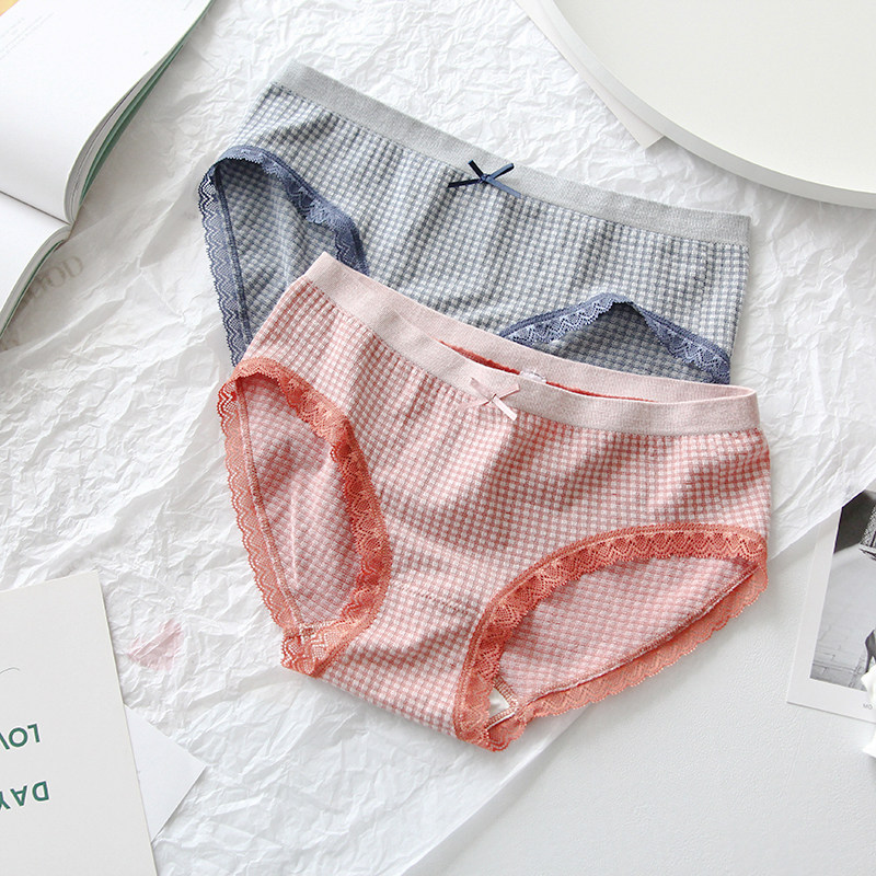 Glutinous rice Huffag) Day Faculty Skin Care Cotton Comfort Triangle Briefs PLAID ELASTIC PURE COTTON GIRL LACE MID WAIST