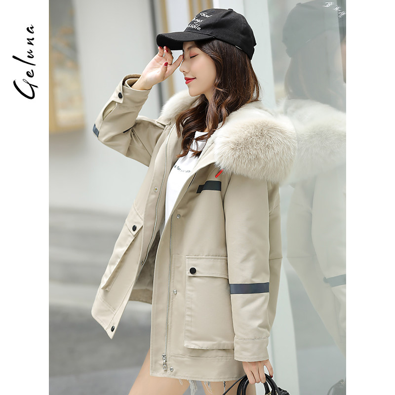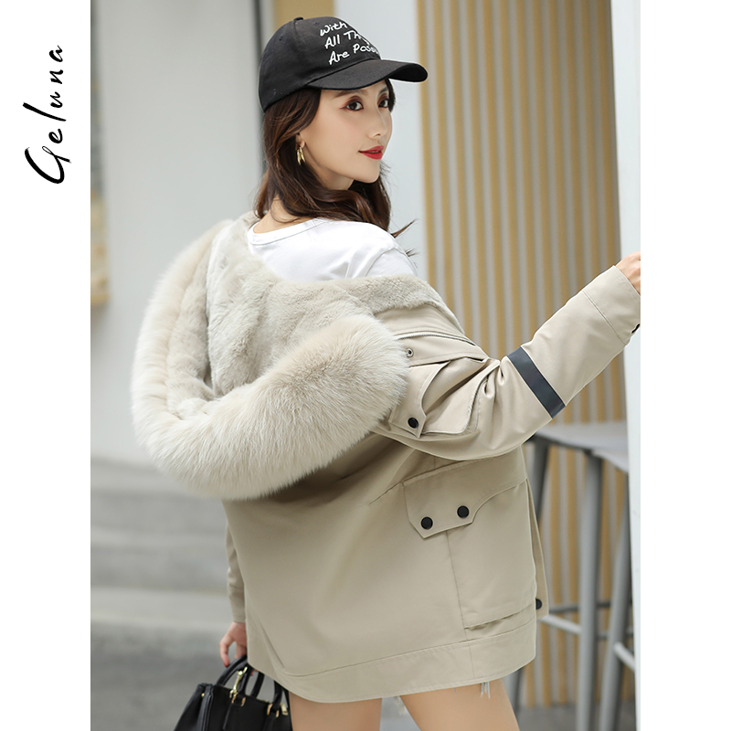 Pie overcomes women 2021 autumn and winter models with new even cap fox fur collar medium long version fur coat female rex rabbit hair liner