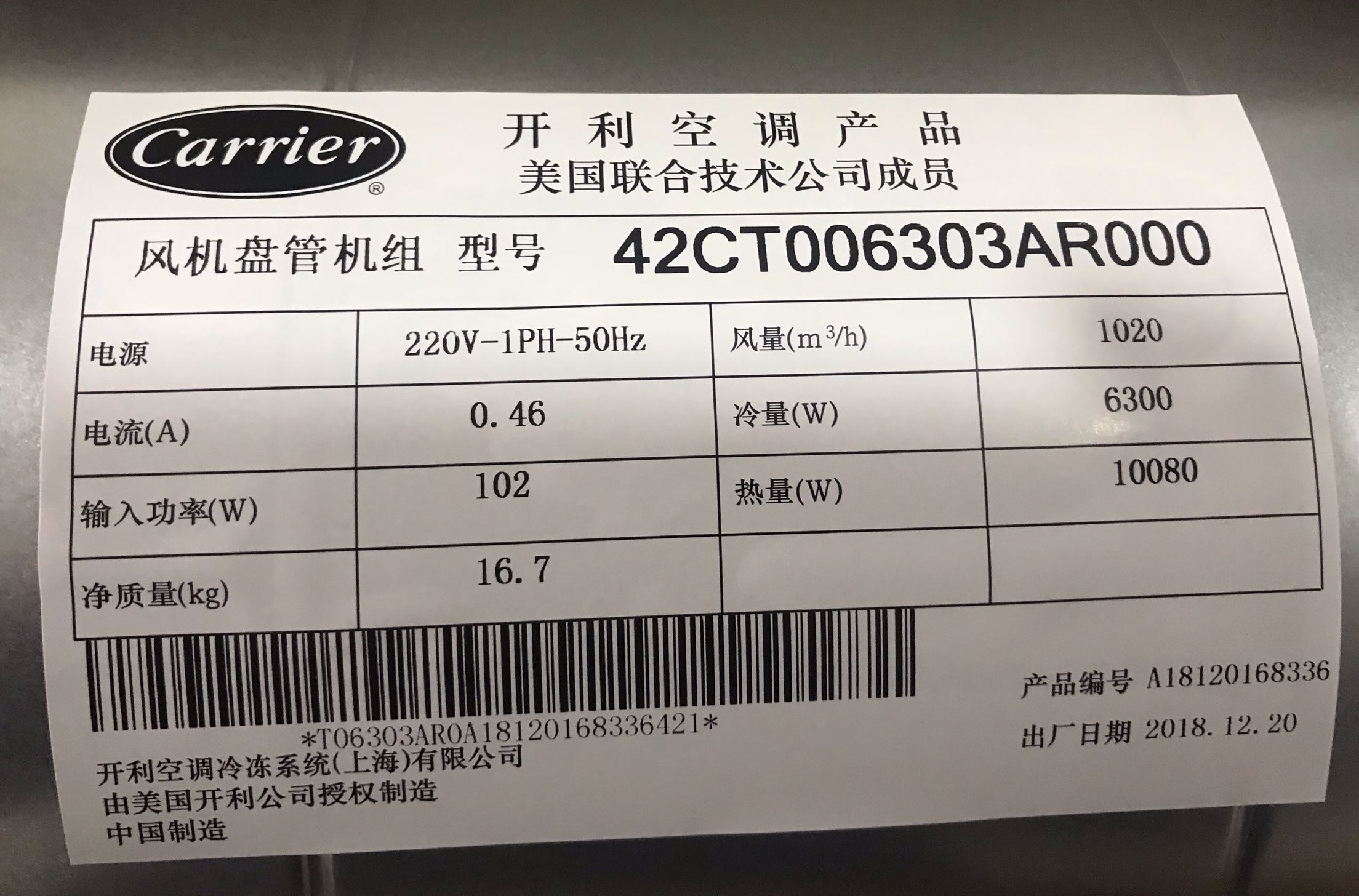 Carrier fan coil horizontal concealed heating and cooling water system Air conditioning end unit 42CT006303 original