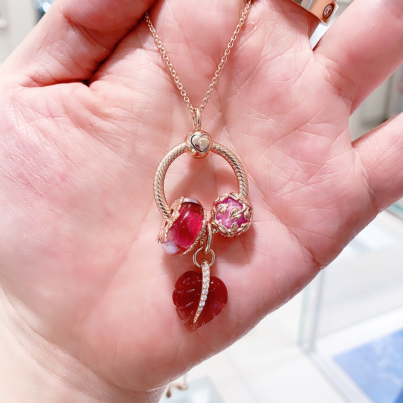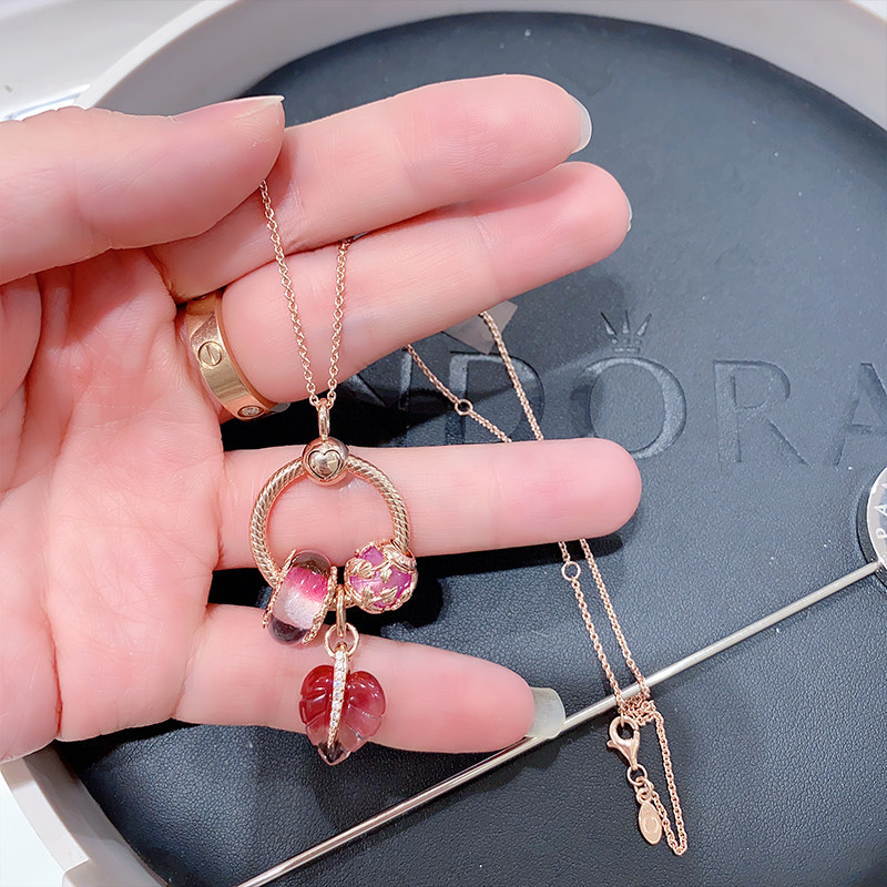 Pandora necklace women's official website Natural beauty Rose gold pink Murano glass pendant women's suit