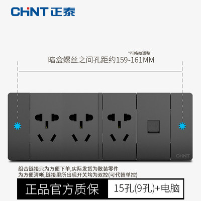 Positive Thai Switch Socket Panel 118 Type Wall Panel 5C Black Four Computers fifteen Holes Nine 9 Deep Grey