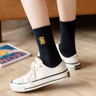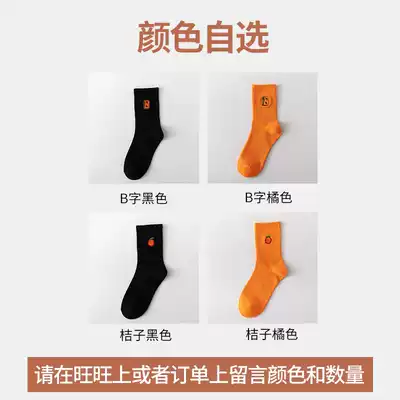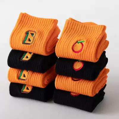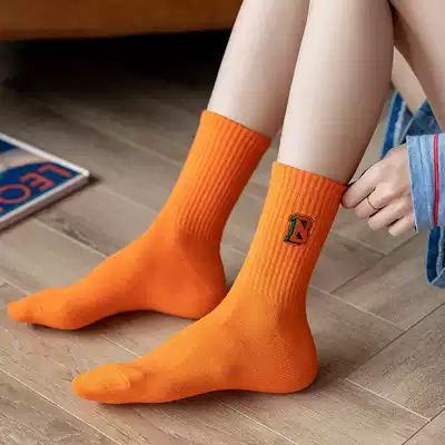 Mountain notes orange orange socks female tide Net red autumn ins Super fire medium and long version of early autumn socks