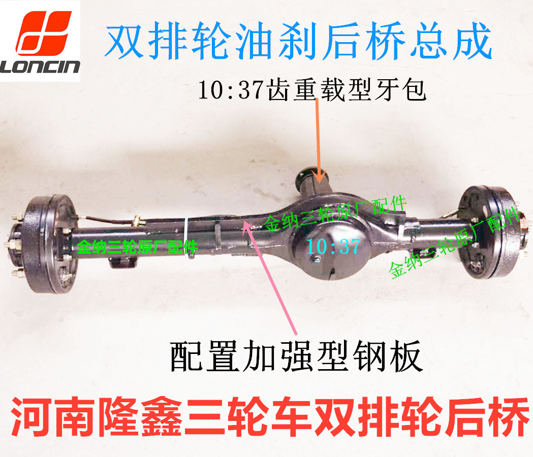 Henan Loncin tricycle double row wheel rear axle assembly heavy-duty type 10 37 tooth bag assembly transmission shaft rear axle