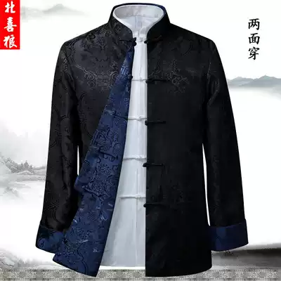 Spring and Autumn double-sided wear Tang suit men's long sleeve middle-aged and elderly coat jacket Chinese style large size buckle jacket father suit