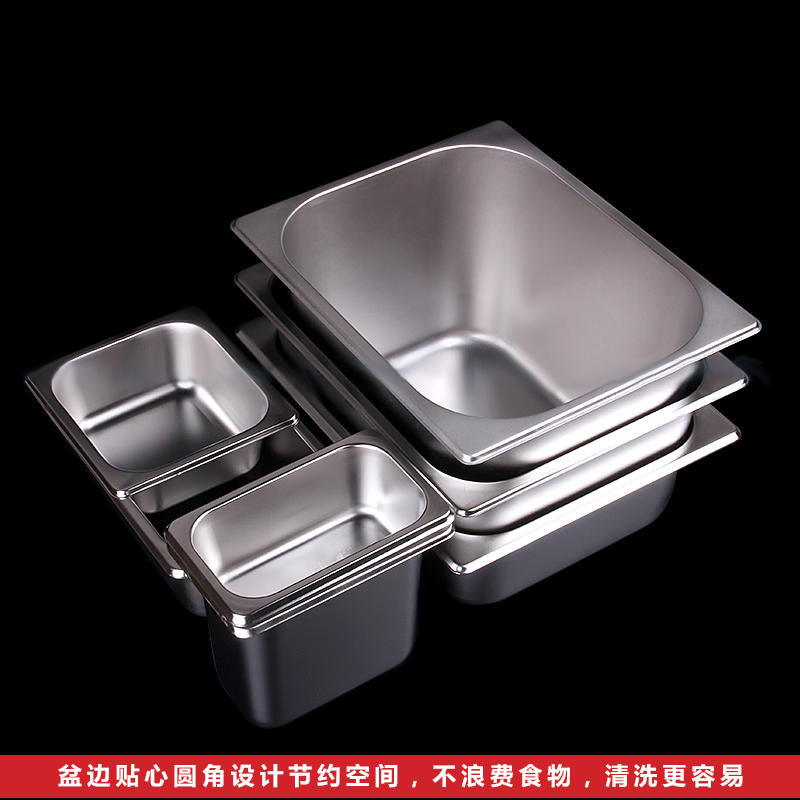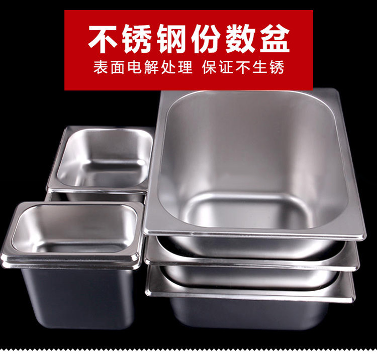Stainless steel commercial parts pan 1 3-1 6-1 9 plates fast food milk tea shop rectangular number of parts box