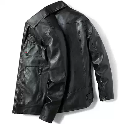 Leather men's casual Korean version of handsome autumn and winter Haining leather tough guy motorcycle leather jacket lapel jacket trend