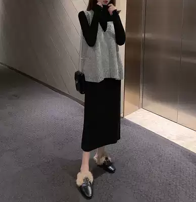 Curry vest gray dress gray vest black dress