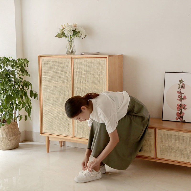 Japanese-style creative rattan shoe cabinet Nordic solid wood cloak cabinet simple pastoral homestay style storage storage cabinet porch cabinet