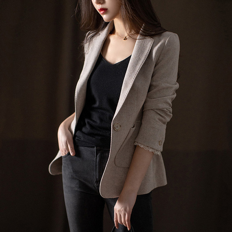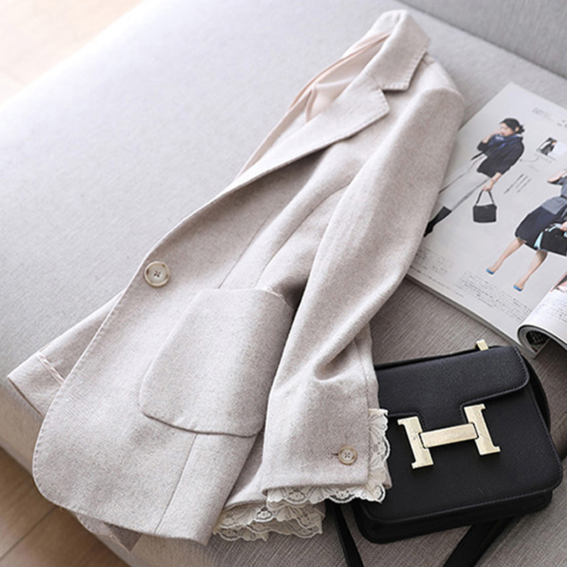Suit jacket women's Korean version loose 2020 new spring and autumn casual British style lace stitching small suit top