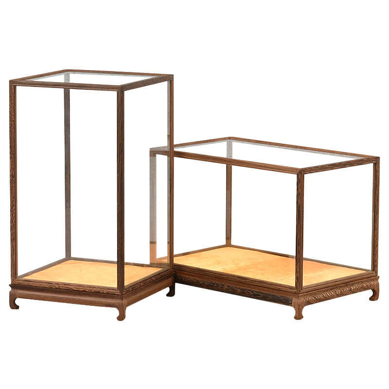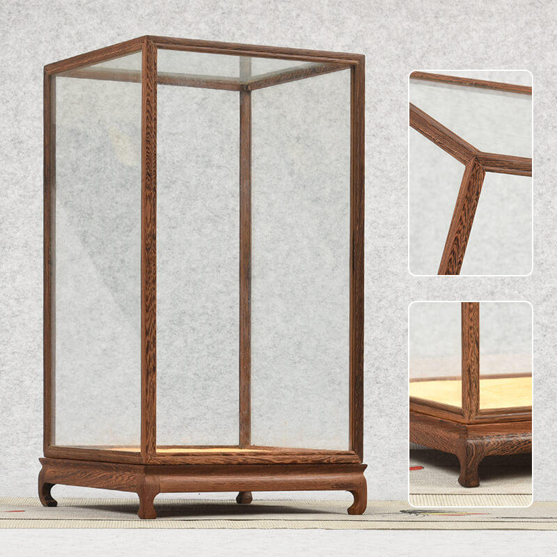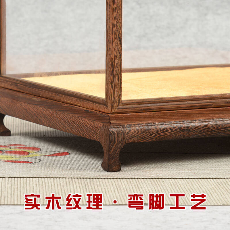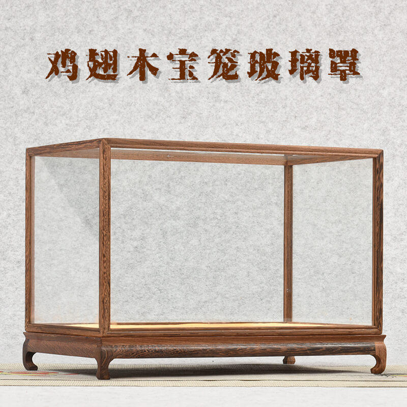 Set up for red wood Carved Antique Craft Gifts Swing Accessories Statue stone Stone Pendulum base Chicken Wings Wood Treasure Cage Display Anti-Dust Glass Hood