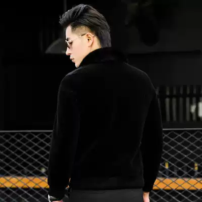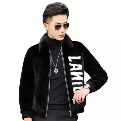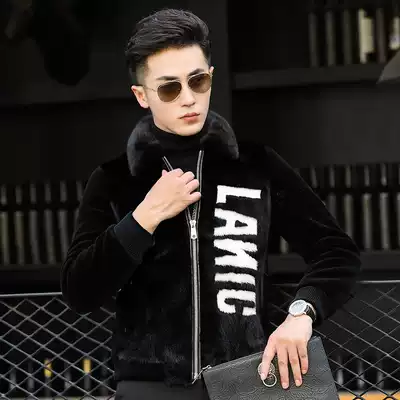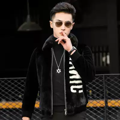 Haining mink coat men's sheep shearing fur one-piece short lapel leather leather coat men's fur trend jacket