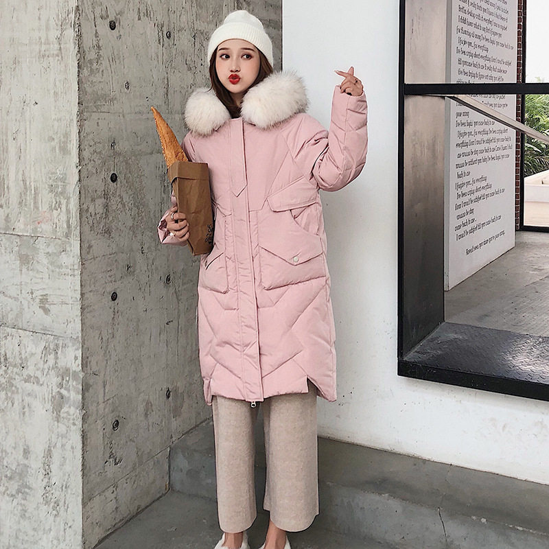 2019 autumn and winter women's new women's down jacket women's mid-length Korean version slim big fur collar down jacket women's coat