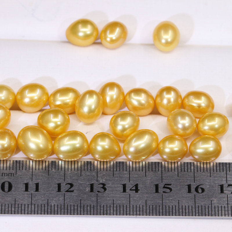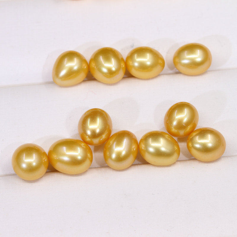 Natural pearl diy drop-shaped loose beads do pendant earrings accessories nearly flawless bright half-hole gold beads bare beads