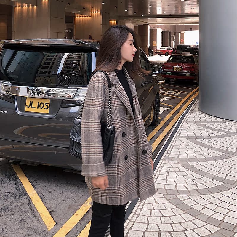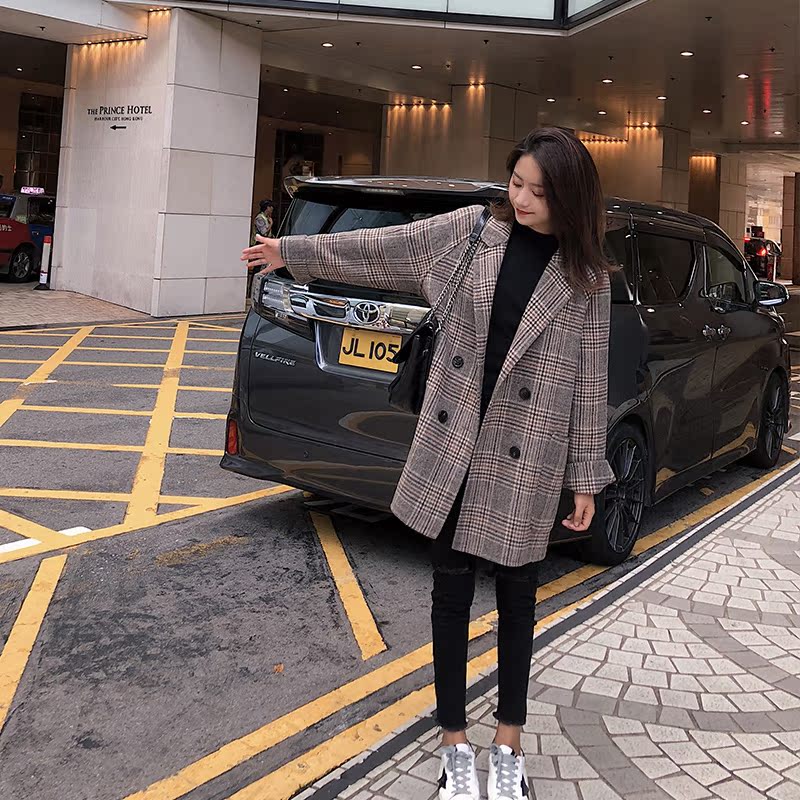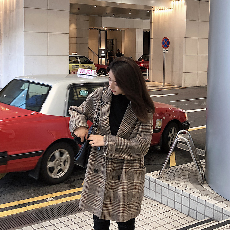 Plaid wool coat women's 2020 autumn and winter new popular wild Nizi medium and long version of houndstooth coat tide