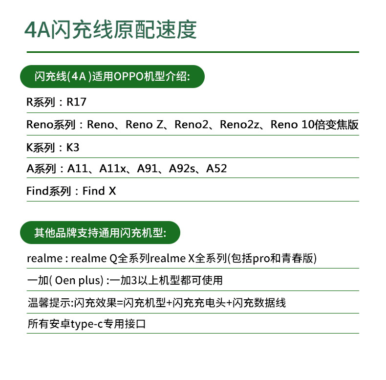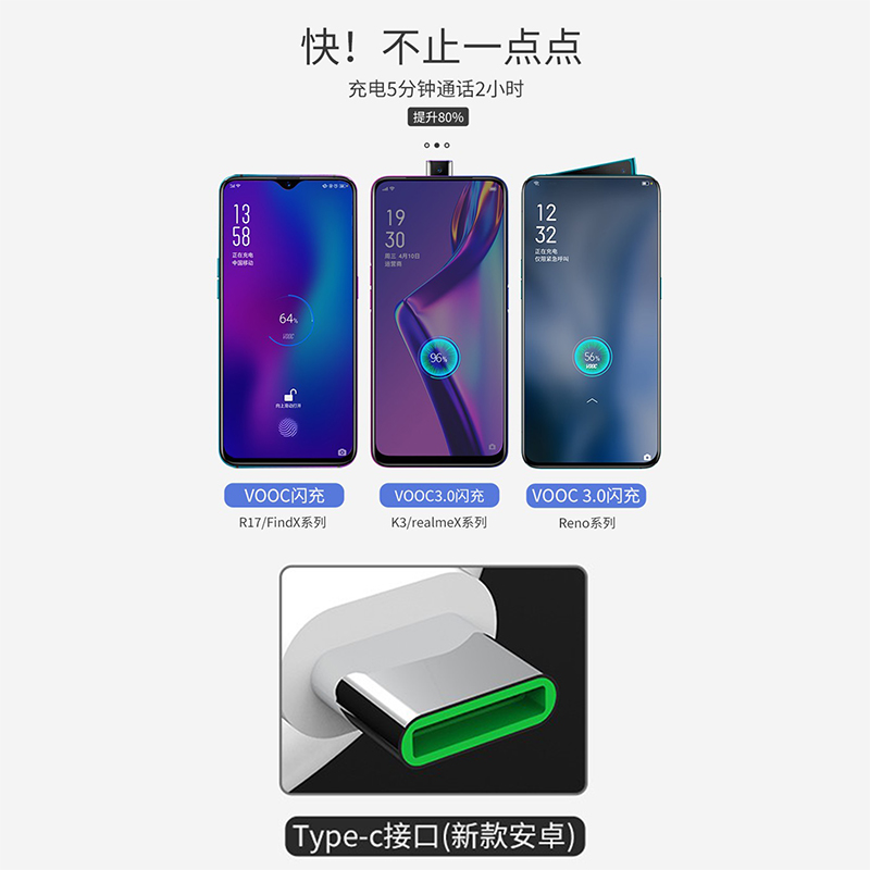 Suitable for OPPO data cable Reno2 3 flash charging 4proR17 mobile phone Find X original z charging line Type-c head A11X lengthened K3 fast charging A92