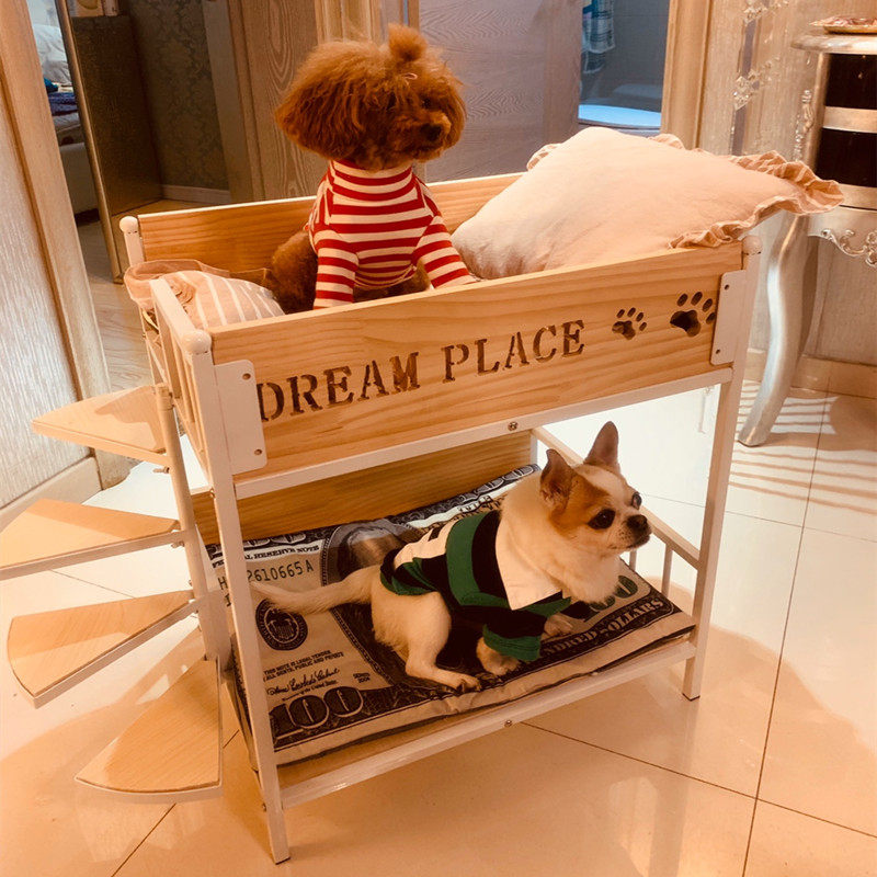 Dog Bed Pet Bed Solid Wood Kitty Bed Iron Art Princess Rack Bed Double Dog Kennel Dog Bed Pets Up And Down Bed
