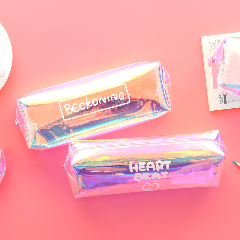 Creative and simple Korean ins large-capacity transparent laser pencil bag net red Japanese girl student personality stationery box